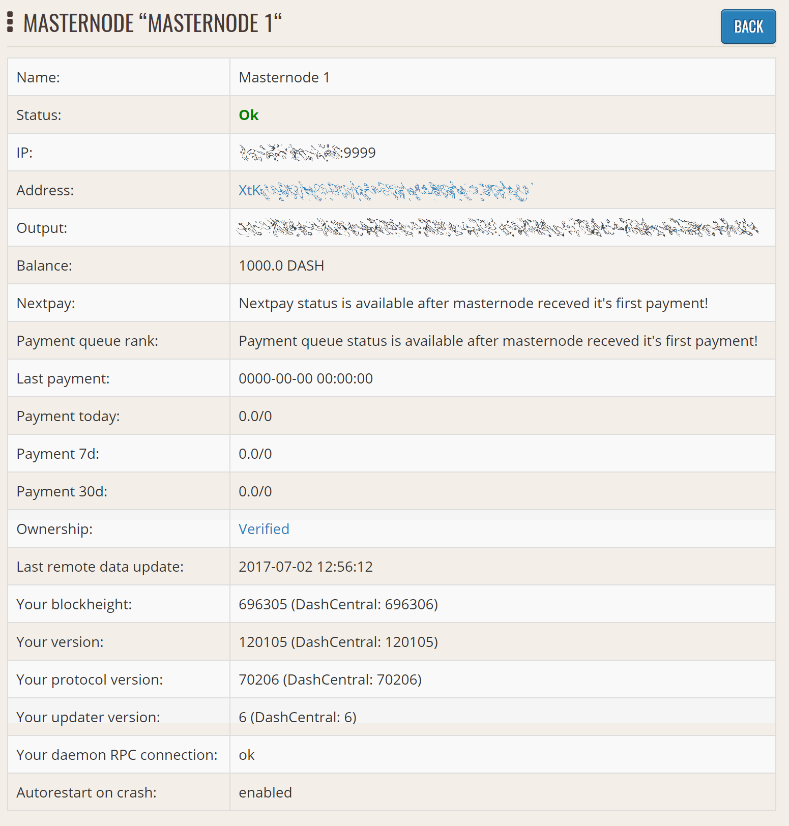 Click Add masternode. Your masternode has now been added to DashCentral.