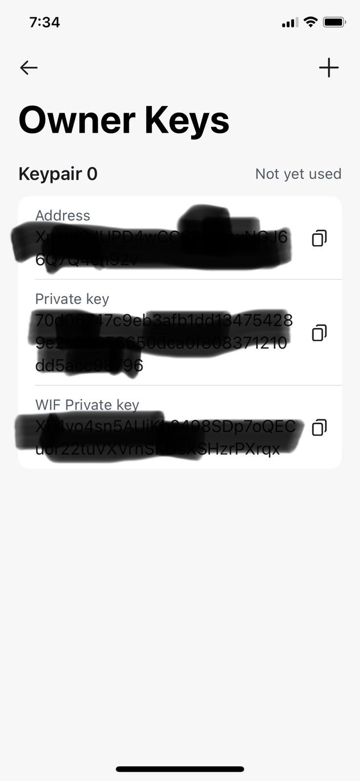 Certain masternode keys may be generated and stored in Dash Wallet. To access these keys, tap the Menu button and select Tools. Tap Masternode Keys and enter your PIN to open the Masternode Keys screen. From here, tap on any of the listed key types to view existing keys or generate new ones. The screen will show all used keys and the first unused one. To generate additional keys, tap the + button.